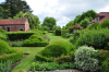We zien hier vaste planten, fuchsia's, rozen, taxus en buxus.